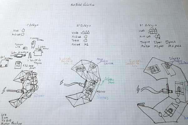 Em busca de entender os primórdios da consciência biológica o artista usa poesia e semiótica para apresentar pequenos robôs antropomórficos e autômatos que percebem o ambiente através dos seus sensores e responde o mundo concreto com movimentos e sons.