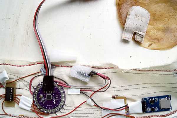 dados e obter um “sexto sentido” sobre seu corpo e seu contexto, transformando a pele em uma interface para experimentação de dados. Esses trabalhos buscam explorar possíveis futuras peles-vestimentas, mais adaptáveis aos modos de ser contemporâneo, aos fluxos de informações e ao corpo em movimento. Trata-se de tecidos construídos por processos biológicos naturais, mas também técnicos.